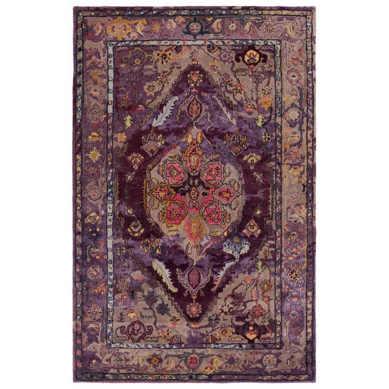 Quest Handmade Medallion Purple/ Gray Area Rug (5’X8′)