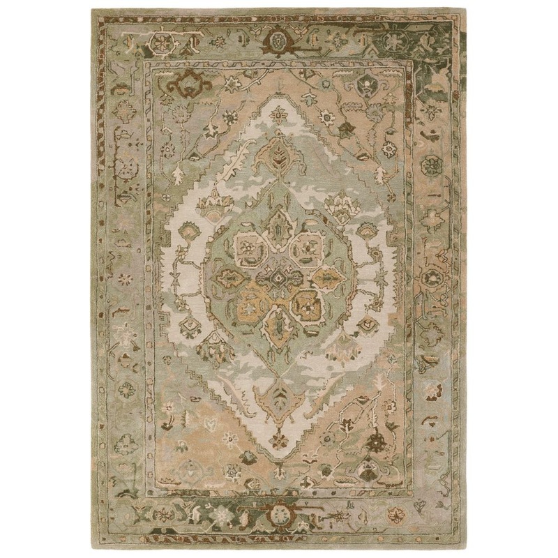 Quest Handmade Medallion Green/Taupe Area Rug (9’X12′ Rectangle)