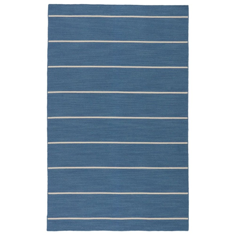 Terrace Cod Handmade Striped Blue/ Cream Area Rug (7’10″X9’10”)