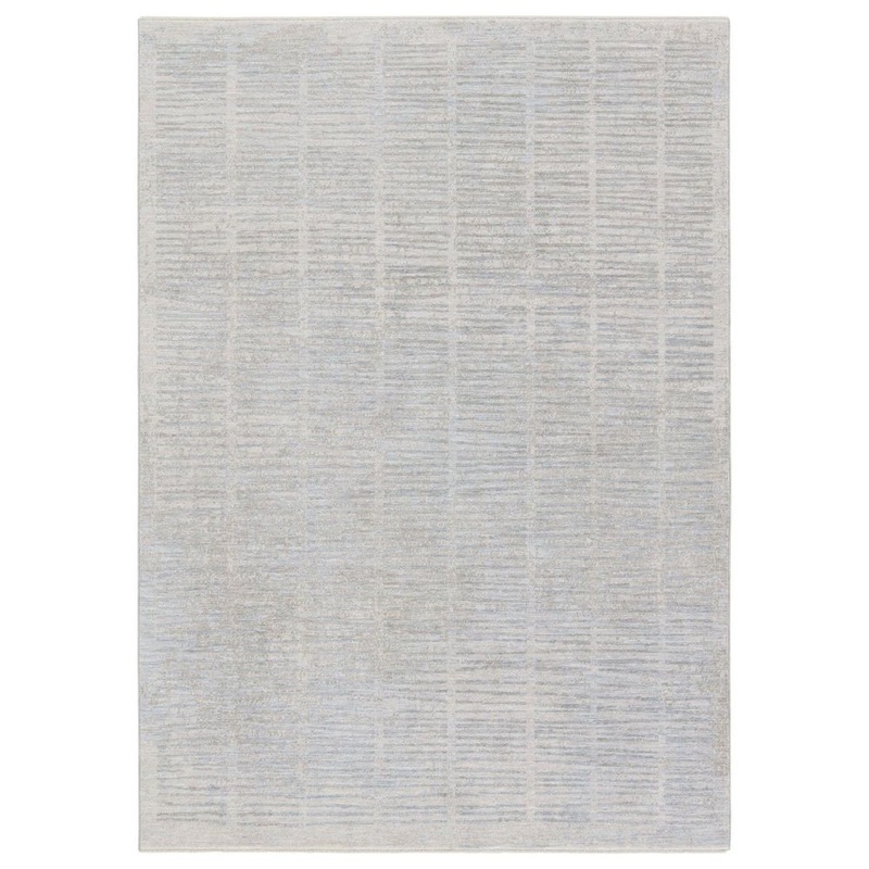 Apex Striped Light Gray/ Blue Runner Rug (3’X10′)