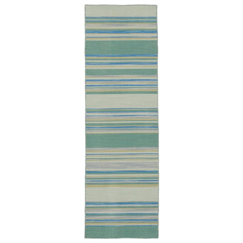 Ellsworth Handmade Striped Blue/ Turquoise Runner Rug (2’6″X8′)