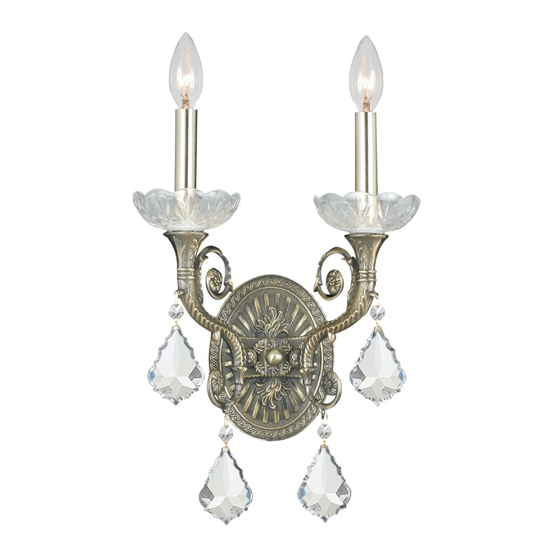 Majestic 2 Light Spectra Crystal Historic Brass Sconce
