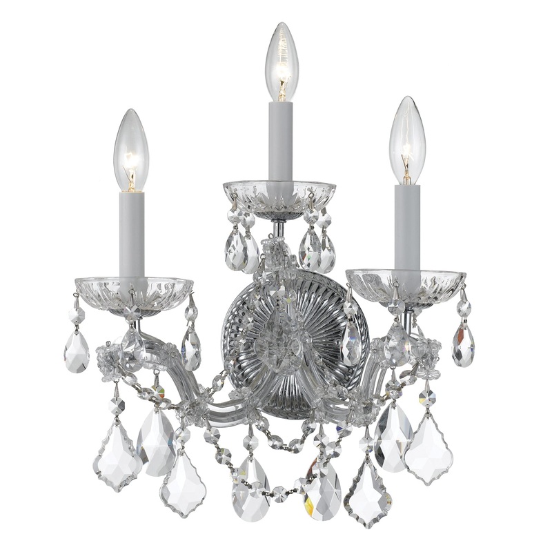 Maria Theresa 3 Light Hand Cut Crystal Polished Chrome Sconce