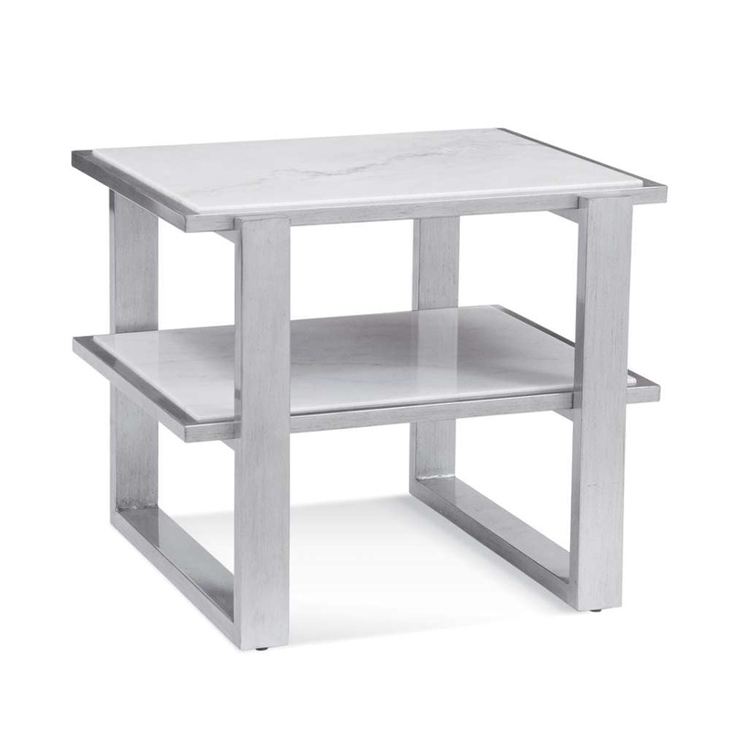 Helena Side Table With Two Drawers In Light Blue Textured Linen