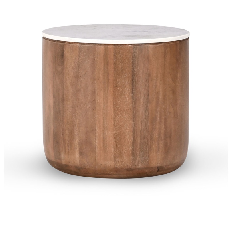 Josie Mango Wood 22″ Round End Table Pottery Brown/Marble