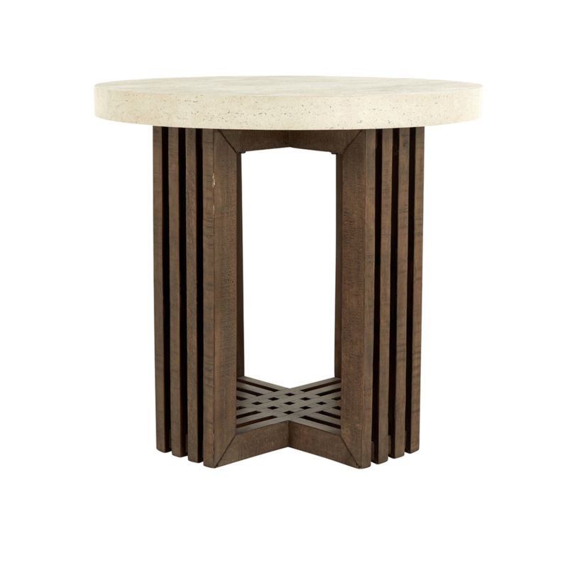 Aspen Reclaimed Pine 26″ Round End Table Distressed Brown/Weathered Chalk