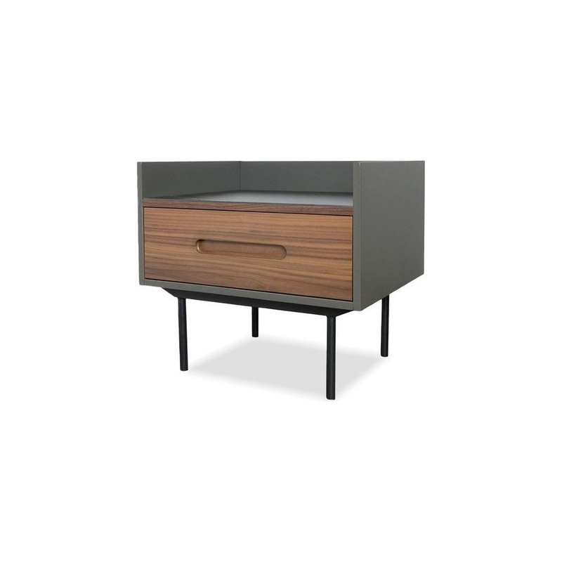 Slater Side Table Walnut Front/Slate Grey Ceramic Top, Black Powder Coated Steel