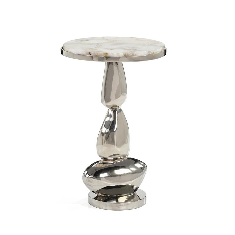 Solis And Brushed Nickel Branch Martini Table – White – Brass