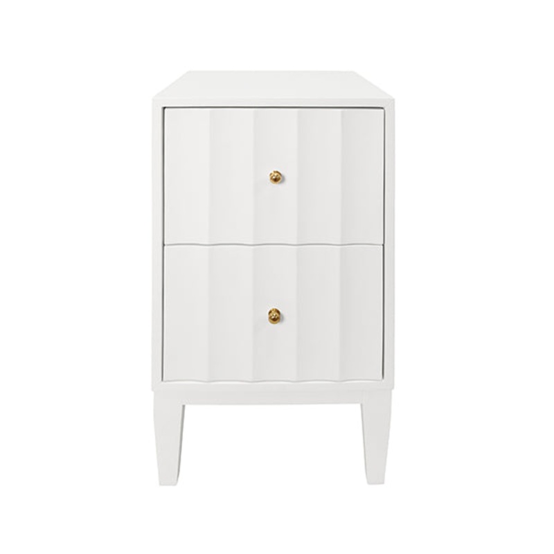 Two Door Side Table With Fluted Detail In Matte White Lacquer