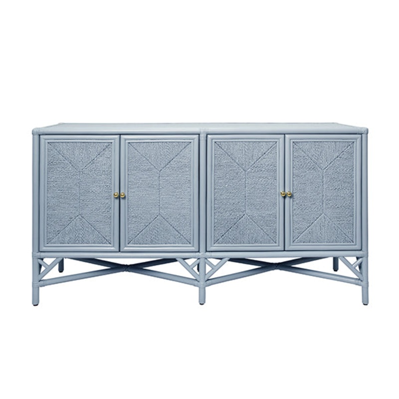 Eleanor Rattan Four Door Cabinet With Rope Front Doors In Painted Light Blue