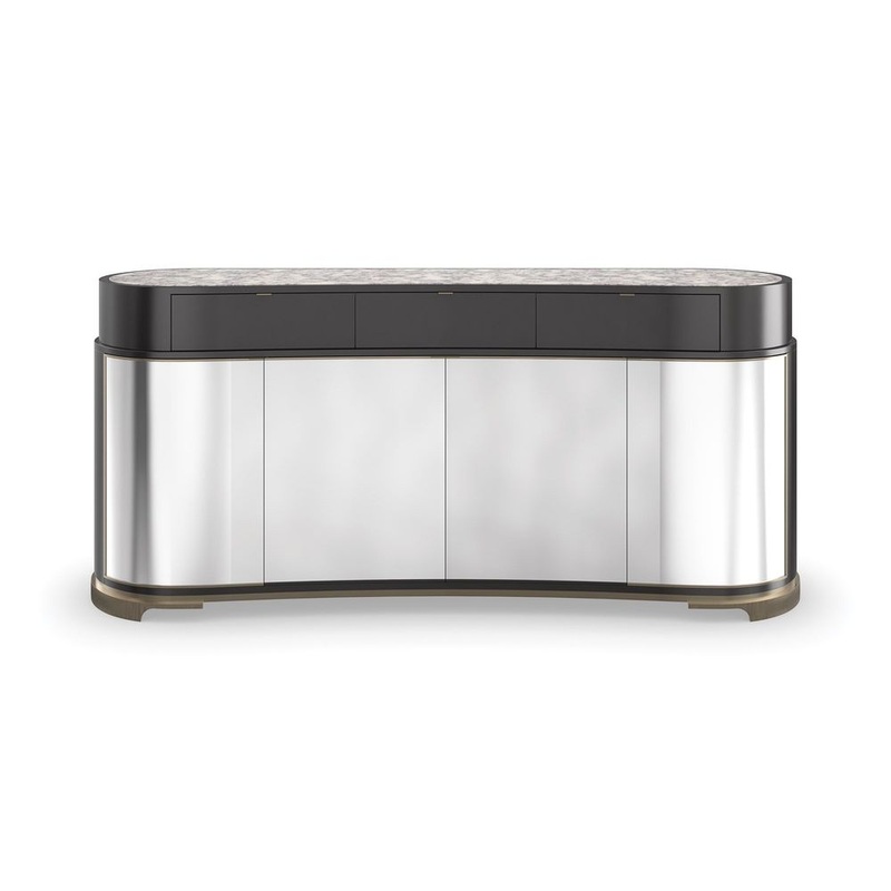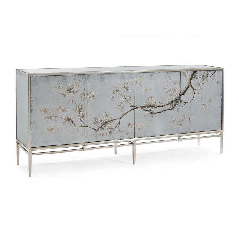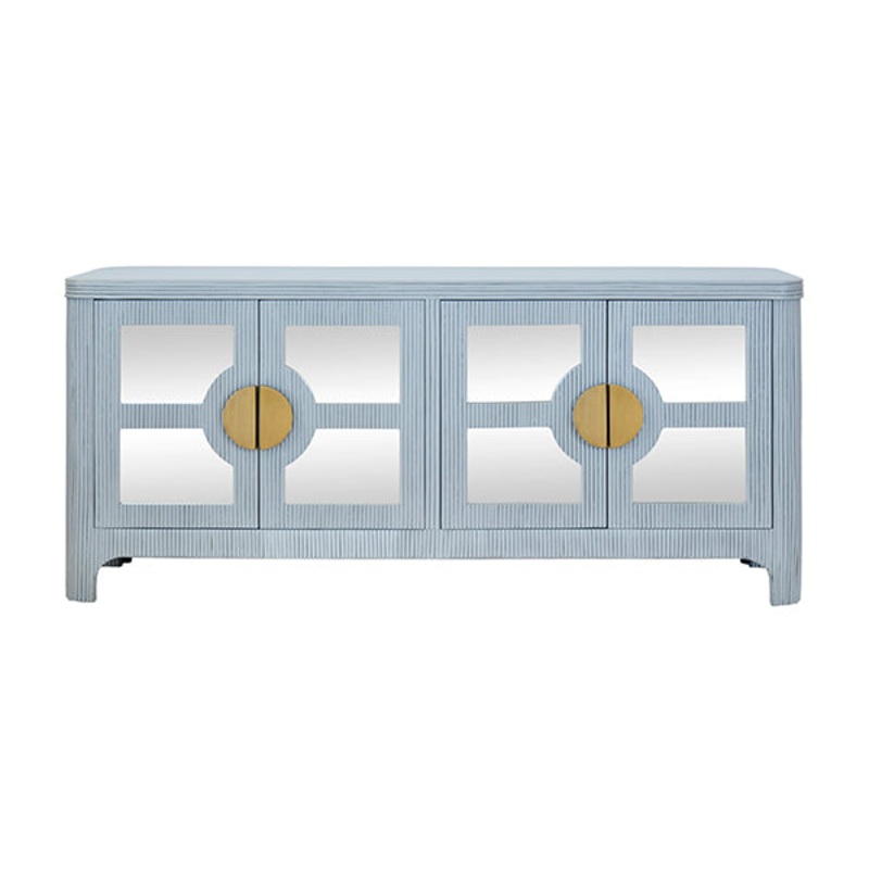 Four Door Mirror Front Reeded Case Buffet In Painted Light Blue
