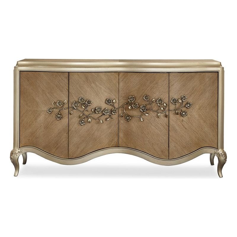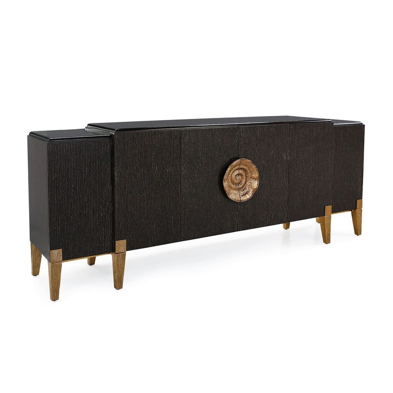 Four Door Buffet With Satin Brass Hardware And Foot Caps In Wrapped Rope