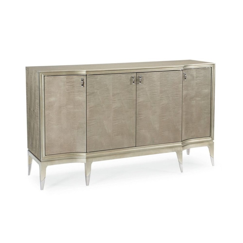 Aria Three Door Decorative Mirror Front Buffet In Rattan Painted Light Blue