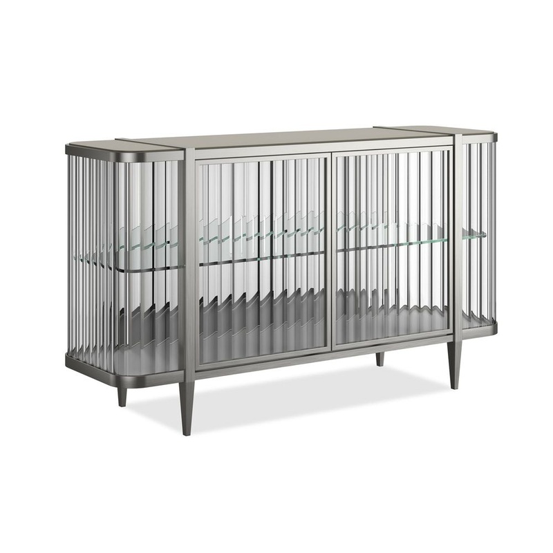 Calvin Buffet Walnut Veneer Black Marble Top, Black Powder Coated