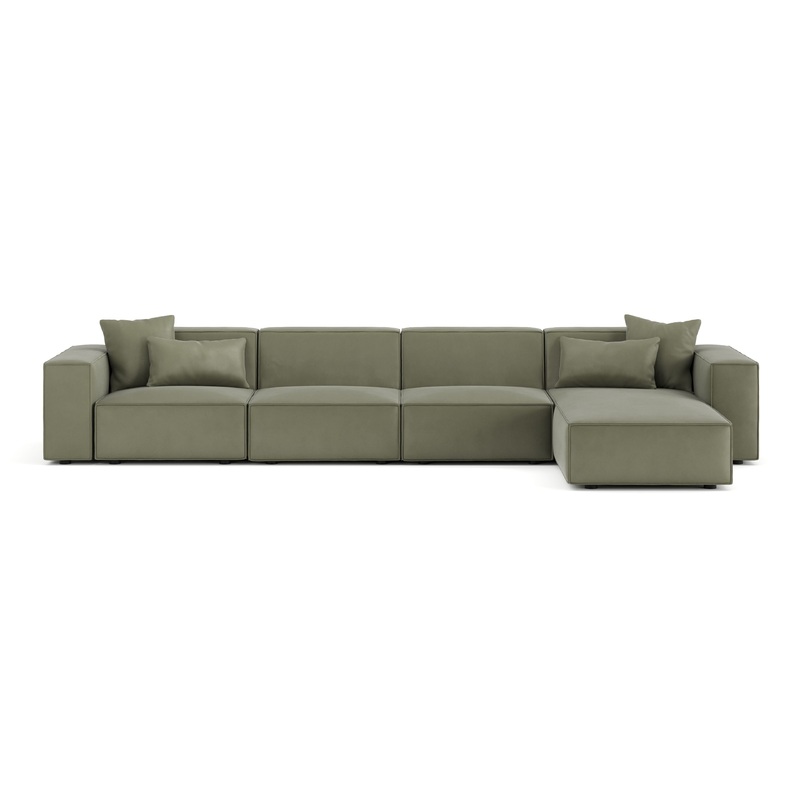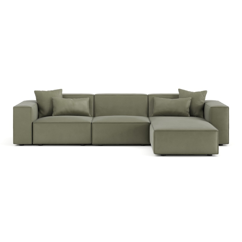 Arles – Arles Sectional, Three Seater, Right Chaise, Sage Vegan Suede