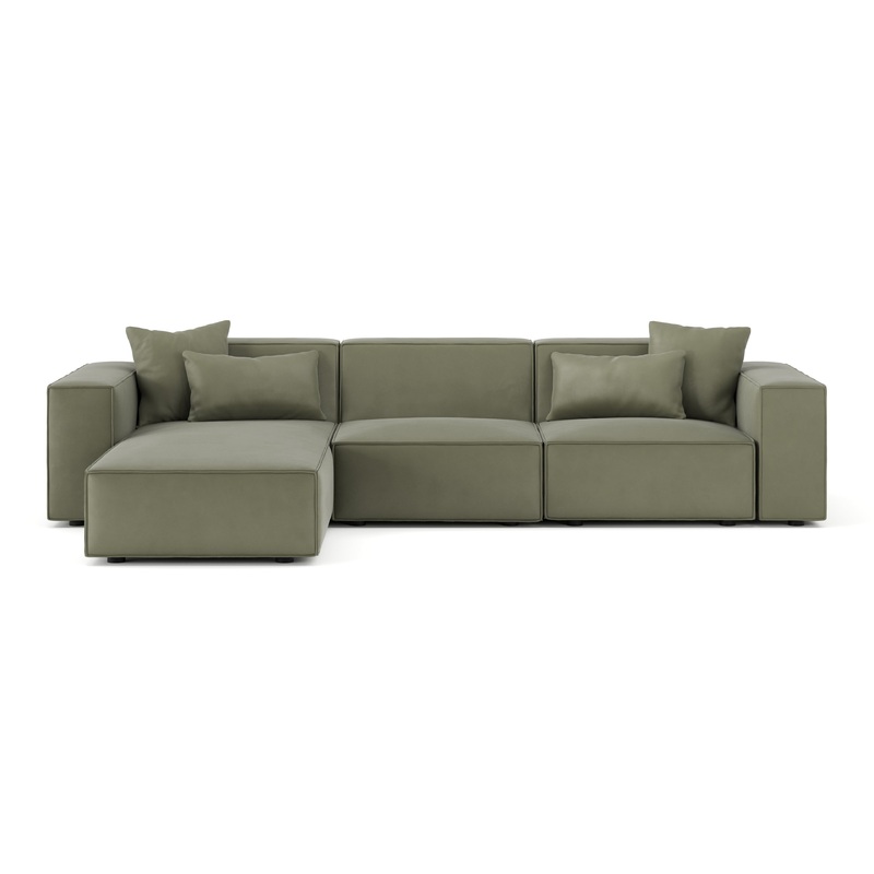 Arles – Arles Sectional, Three Seater, Left Chaise, Sage Vegan Suede