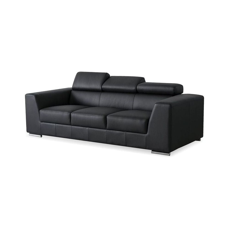 Icon Sofa Black Premium Leather Adjustable Headreat / Polished Steel Legs