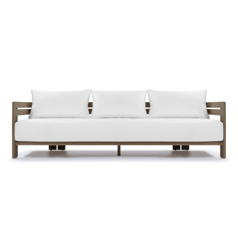 Lusso – Lusso Outdoor Sofa, Weathered Teak with White Cushions