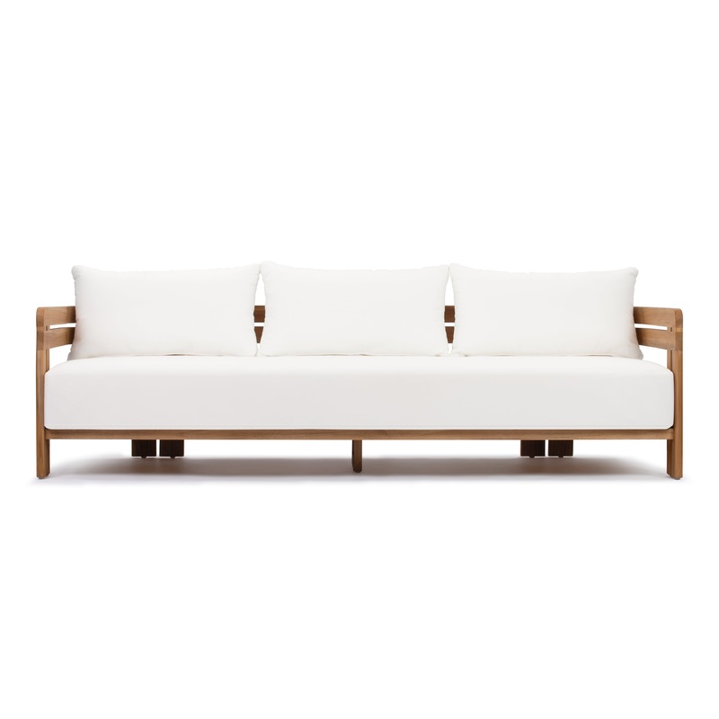 Lusso – Lusso Outdoor Sofa, Natural Teak with White Cushions