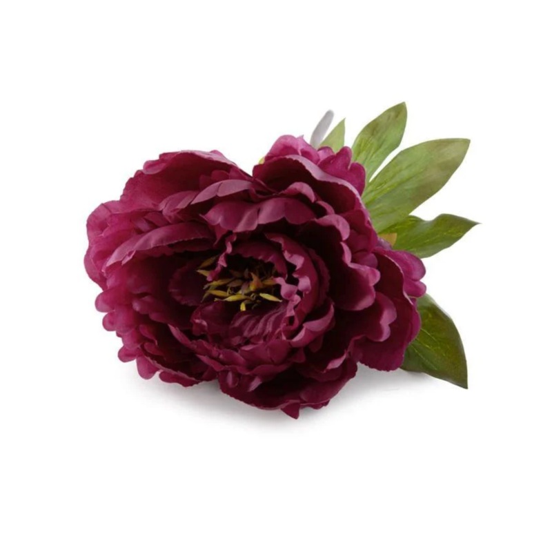 Peony Stem with Leaves | Dark Fuchsia | Overstock