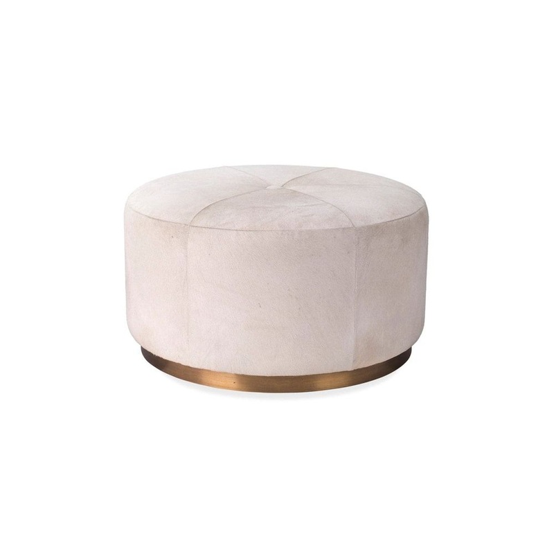 Urban Ottoman w/Ivory Hair-on-Hide-Antique Brass