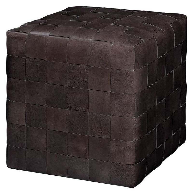 Woven Leather Ottoman Grey
