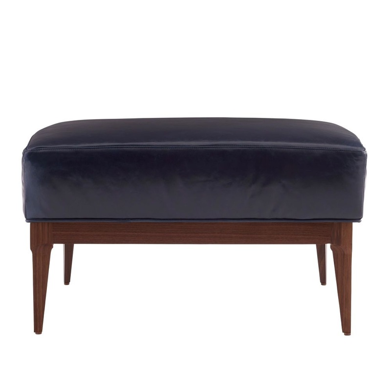 Marquez Ottoman Indigo Leather Dark Walnut – Blue