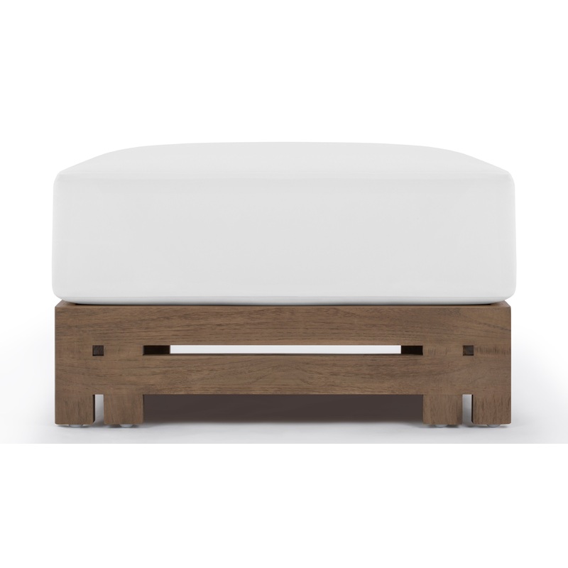 Lusso – Lusso Outdoor Ottoman, Weathered Teak with White Cushion