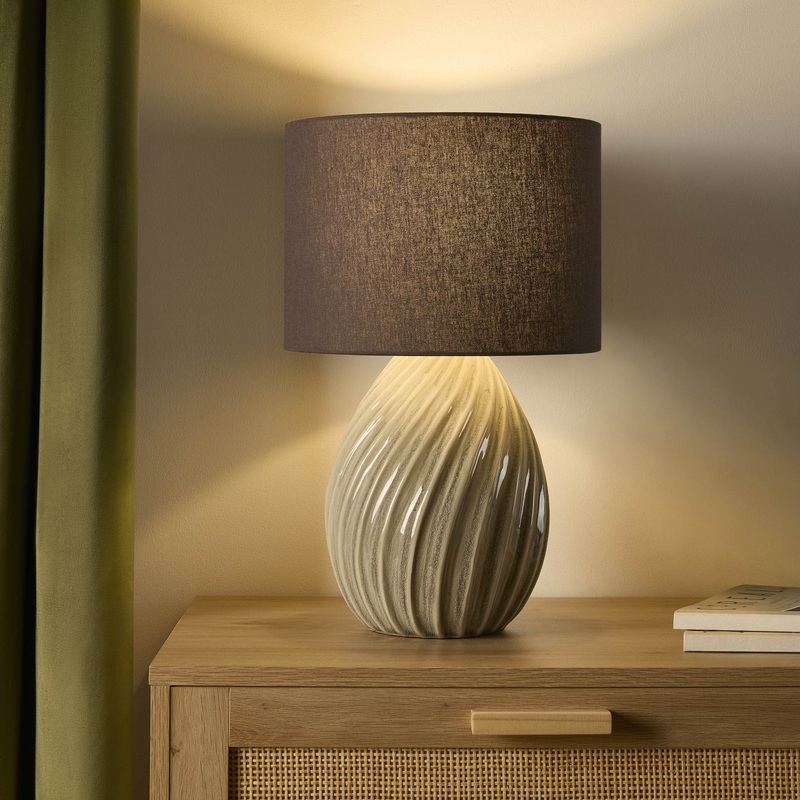 Clara Carved Swirl Texture Ceramic Table Lamp – Charcoal