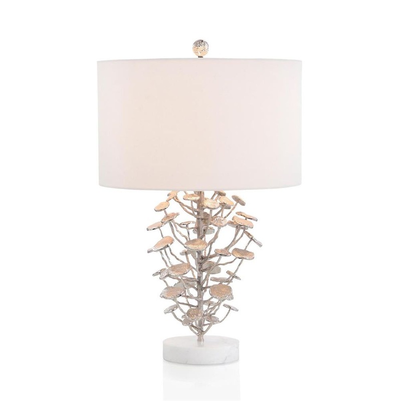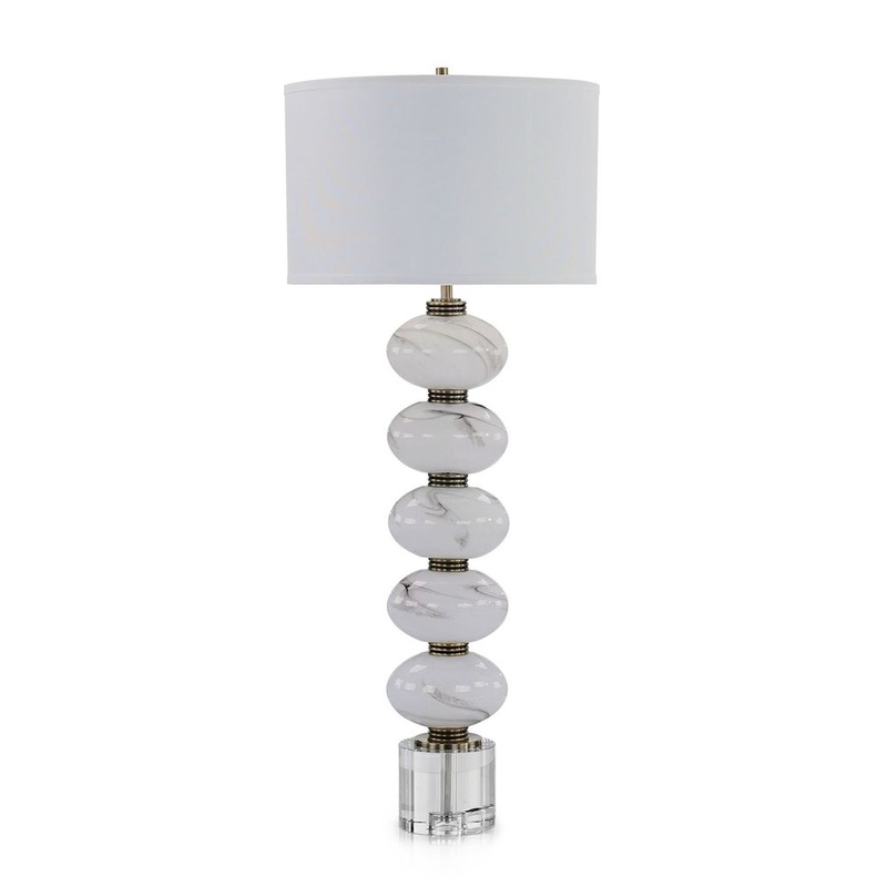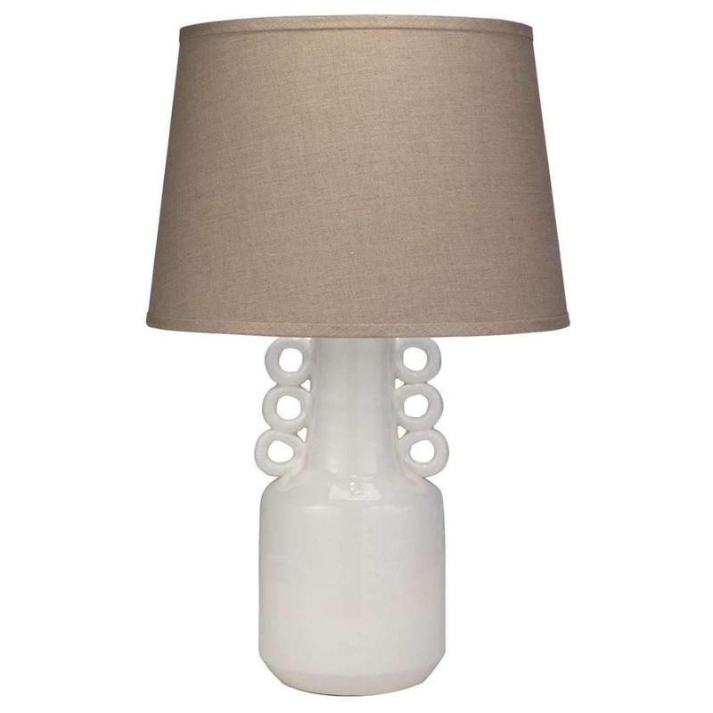 Circus Table Lamp in White Ceramic with Classic Cone Shade in Natural Linen