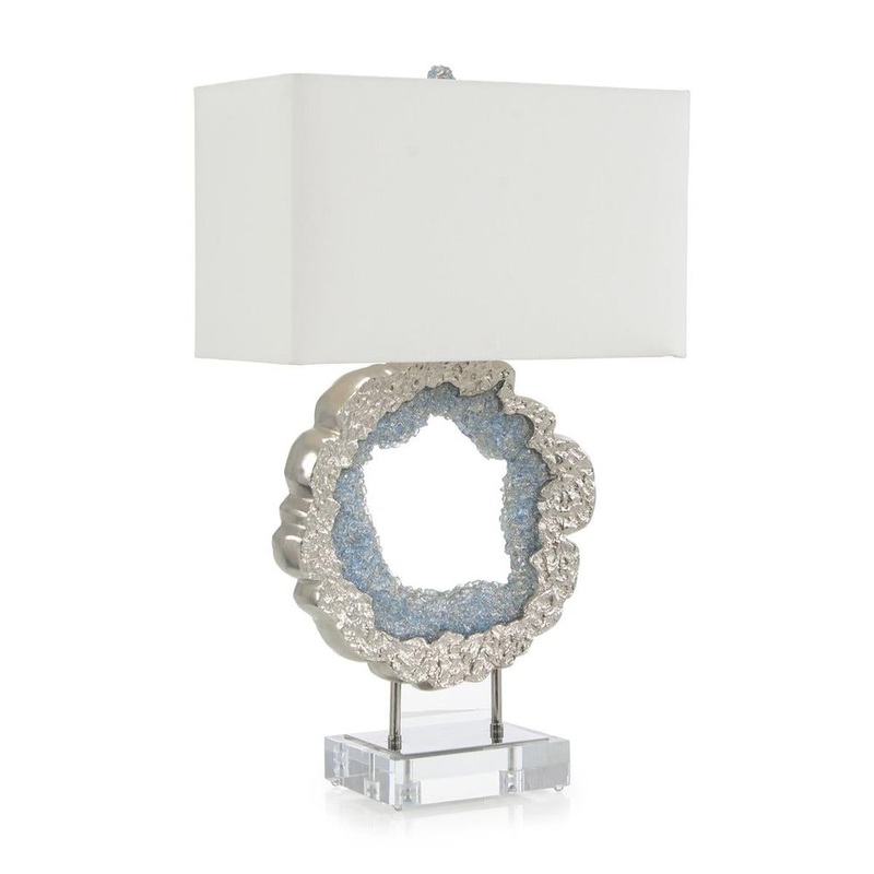 Hammered Nickel And Sea Blue Geode Table Lamp