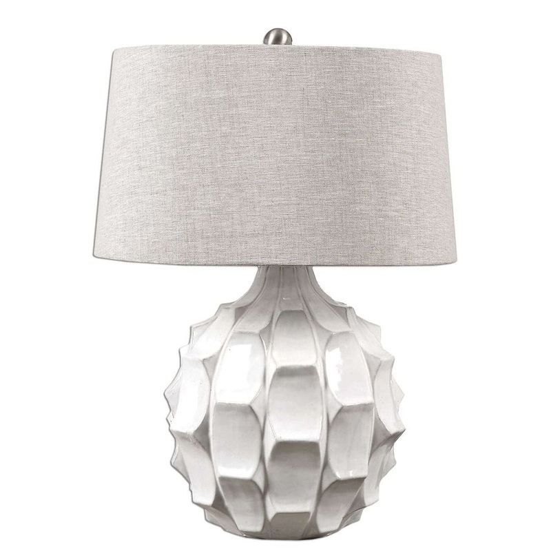 HALO Table Lamp – White With White Shade – Pleated Fabric, Steel, Aluminum
