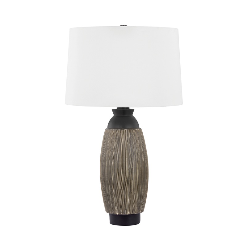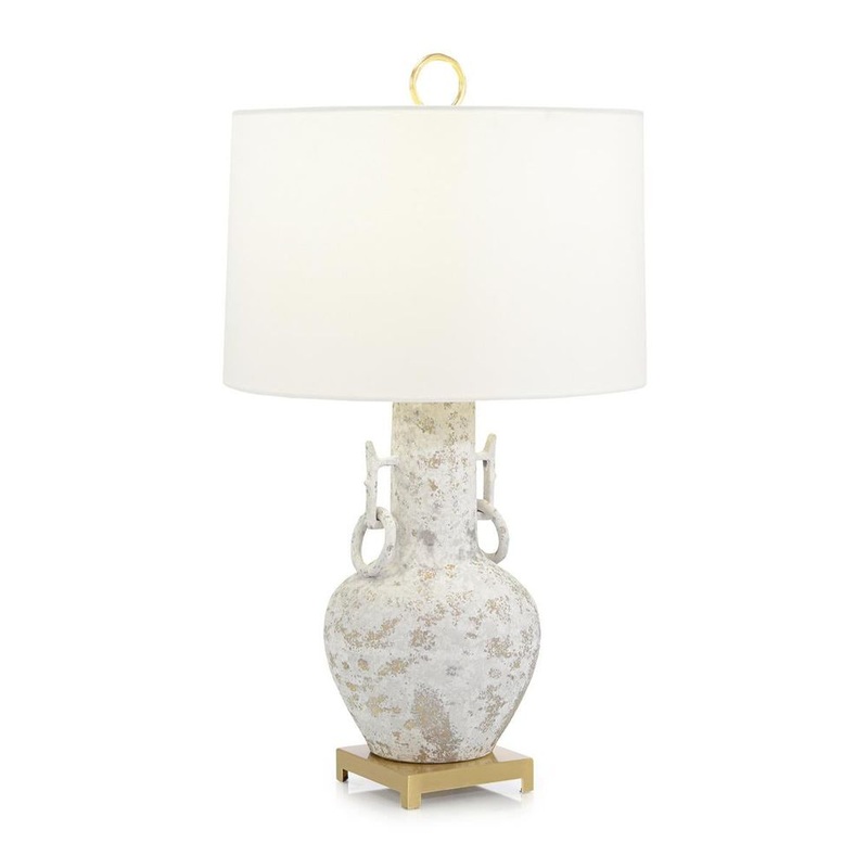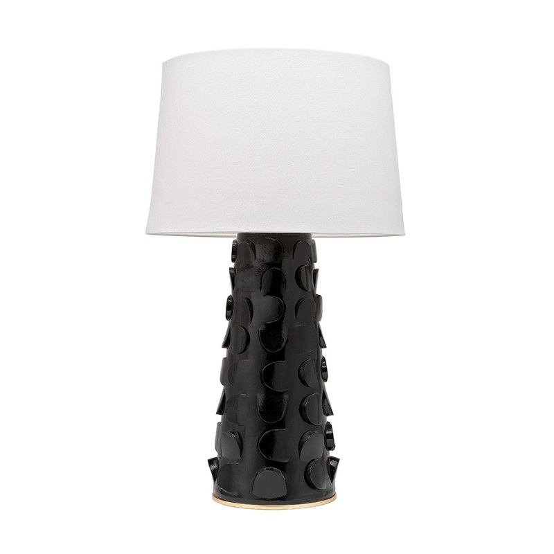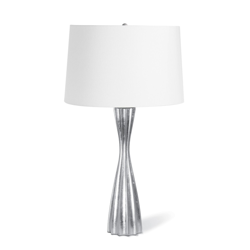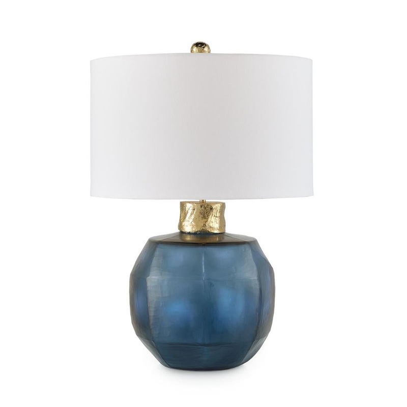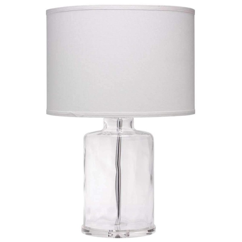 Napa Table Lamp in Clear Hammered Glass with Classic Drum Shade in White Linen