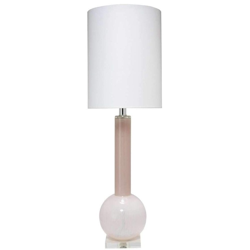 Studio Table Lamp in Petal Pink Glass with Tall Thin Drum Shade in White Linen