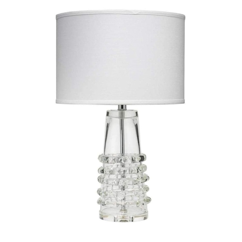 Tall Ribbon Table Lamp in Clear Glass with Medium Drum Shade in White Linen