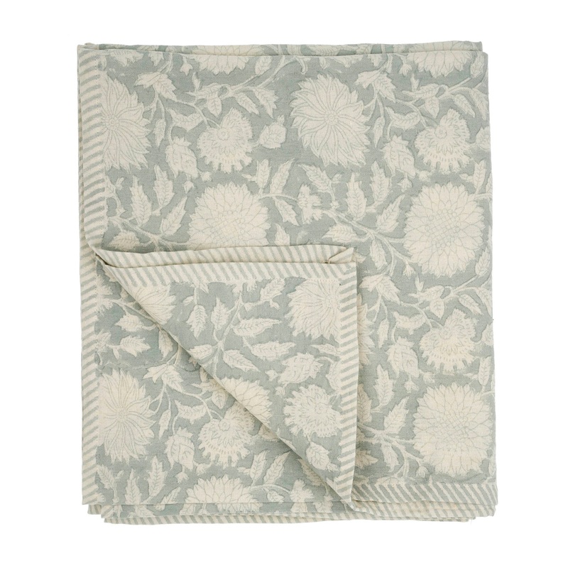 Maeve Block Print Tablecloth Mist