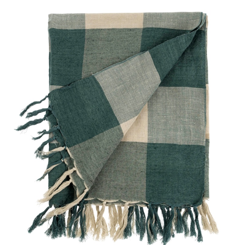 Linen Gingham Throw Blue
