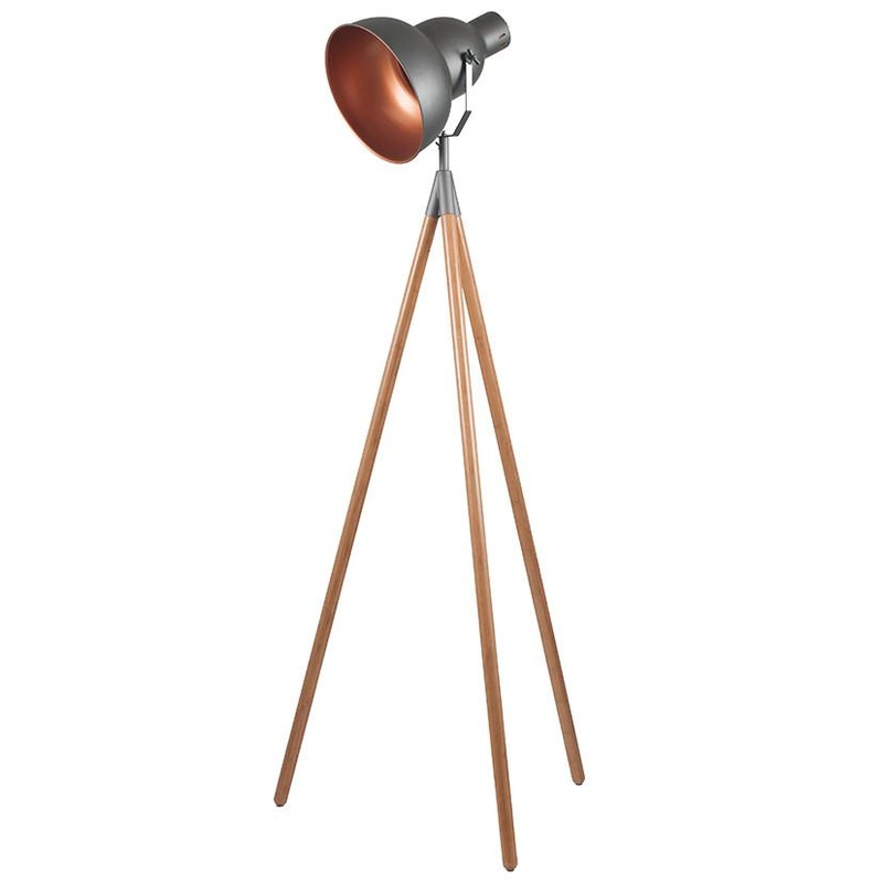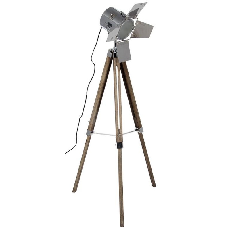 Grey Metal & Natural Wood Tripod Floor Film Light