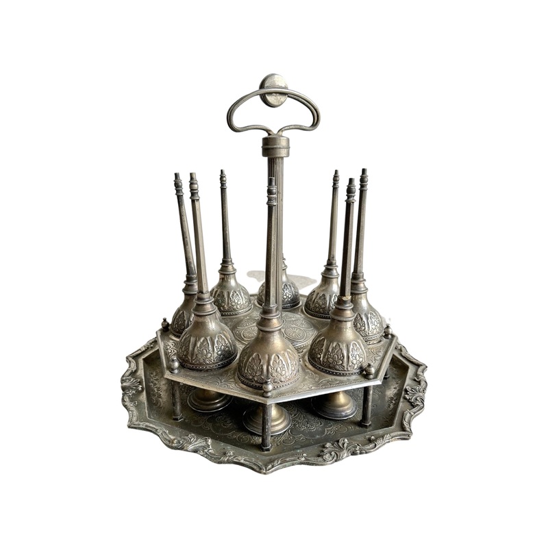 Maroccan Silver Plated Perfume Bottles Set of Eight, 1960s