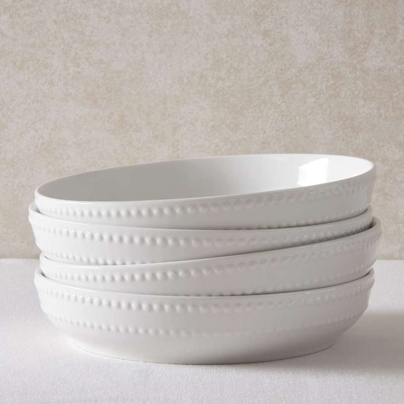 Margalo Beaded Set of 4 Pasta Bowls – White