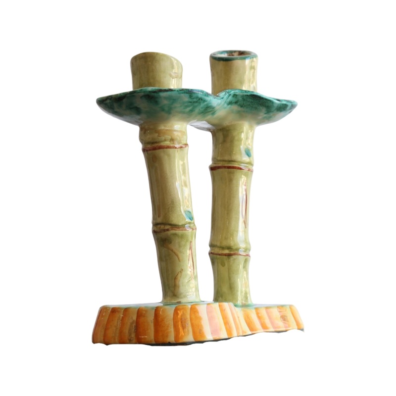 Pucci Umbertide Italian Bamboo Candlesticks Ceramic Holder, 1955s