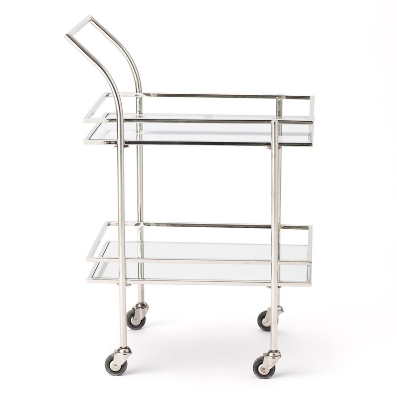 Rectangular Bar Cart w/Mirror-Nickel
