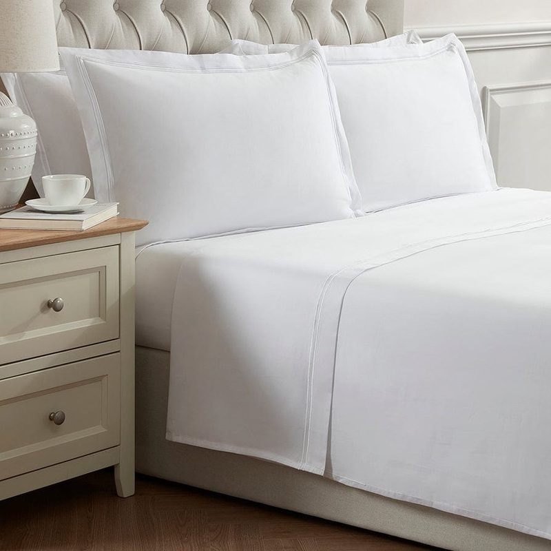 Regent Embroidered 100% Cotton Flat Sheet 400 Thread Count – White