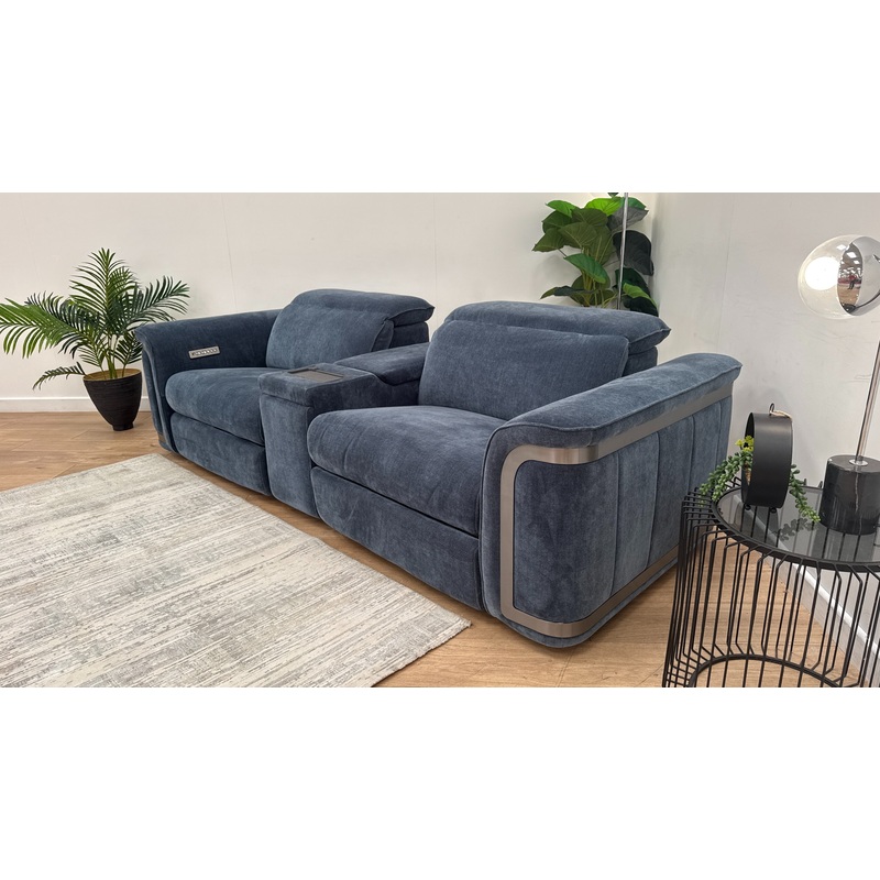 Sofology Plaza Fabric 2.5 Seater Smart Console Power Recliner in Denim