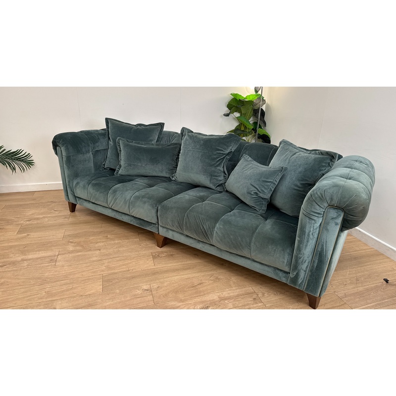 Sofology Midsummer Fabric 4 Seater Split Gold Trim in Day Teal Mix