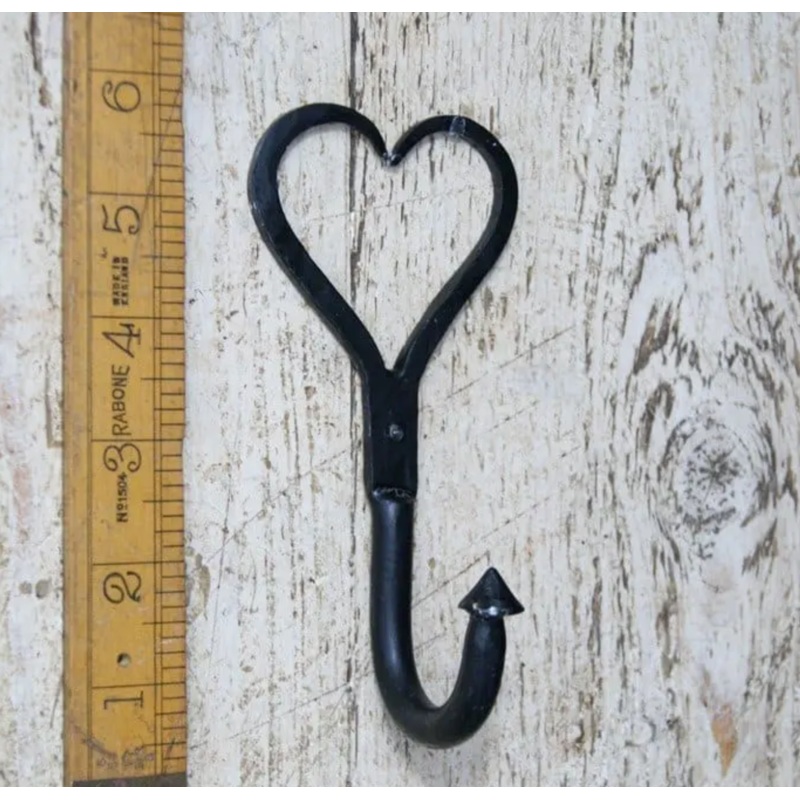 Hand Forged Heart Shaped Hook, Black Wax finish