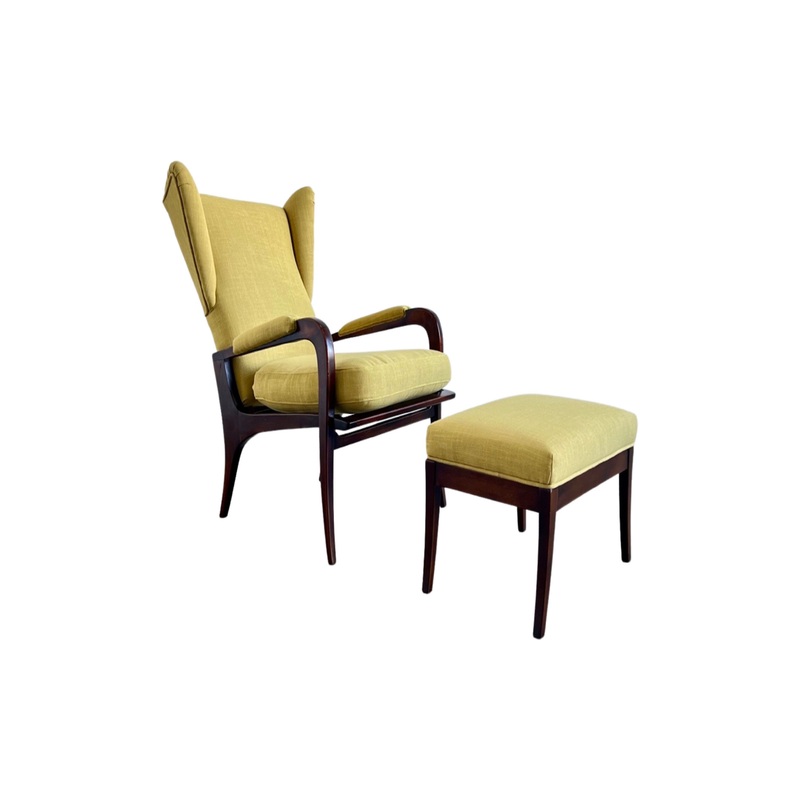 Italian Mid Century Modern Reclining Armchair and Ottoman by Renzo Franchi for Brianzola, 1950s