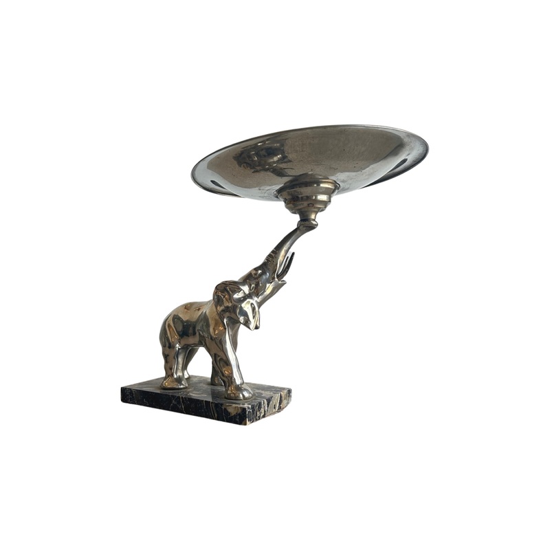 Italian Silver Plated and Black Marble Elephant Sculpture, 1960s