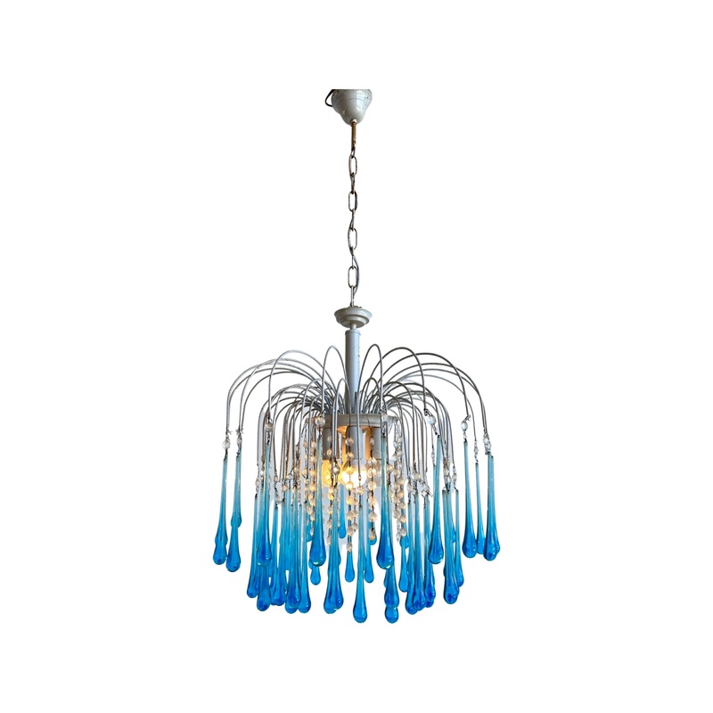 Italian Murano Blue Glass Drop Chandelier by Paolo Venini