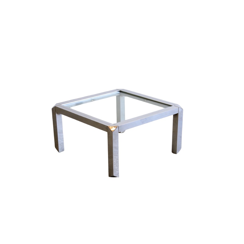 Italian Mid Century Modern Chrome & Smoked Glass Square Coffee Table